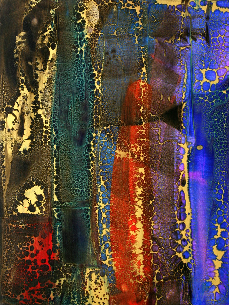 At first her canvases were small in size, viberent with colours of earth; the variegated greens of trees dripping with yellow sunlight pouring through trees to still waters below thivk forest nurturing their secrets , alive with sound of birds and rodent . In this work of 1999 she signs her name with confidence; the world never before had seem to her as close and as intimate as it was now that she rendered it in paint..